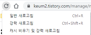 "캐시 비우기 및 강력 새로고침" 클릭