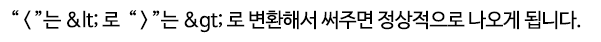 *html에디터로 작성 시 꺽쇠 기호가 적용되지 않기 때문에 아래 기호로 변경해서 사용합니다.